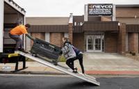 Improve technician Michael Lee, left, level hand Shanon Mayes, heart, and level hand Christian Rivera, proper, roll a field of gear right into a truck at The Mill, a brand new leisure venue, on Friday, Dec. 30, 2022, in Granite Town.